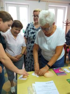 Druga profilaktyka odbyła się dla KGW w Woźnikach. Panie, z zainteresowaniem uczyły się samobadania